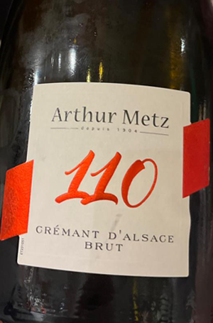 Zum “Vitello Strohnato” servierten die Weinexperten Andreas Pawlikowski und Nils Fuhrmann von Les Grands Chais de France einen zweiten Schaumwein, der nicht nur den Redakteur dieses Blogs zu wahren Begeisterungsstürmen hinriss. Der Crémant Brut “Anniversaire 110” von Artur Metz aus dem Elsass (eine Cuvée aus Chardonny, Pinot Blanc und Pinot Noir) wurde bis zu 60 Monate (!) auf der Hefe gelagert, was sich im Glas wie folgt ausdrückte: brillantes Weißgold. Nuanciertes Bukett von Brioche, gerösteten Nüssen und exotischem Touch nach Kiwi, etwas Zitrusschale. Saftiger Auftakt mit ausgewogenem Spiel von Süße und Säure und animierendem Säurebogen. Mittlere Länge und fruchtbetonter, milder Abklang. Oder um es mit einem Wort zu sagen: umwerfend!