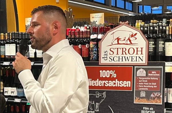 Den kulinarischen Mittelpunkt des Menüs sollte das Strohschwein bilden. Anhand köstlicher Variationen konnten sich die Gäste selbst ein Bild davon machen, dass tiergerechte Haltung auf Stroh, verbunden mit einer lückenlosen Transparenz bzgl. Herkunft und Aufzucht der Schweine sowie handwerkliche Perfektion ein richtig gutes Stück Fleisch auf den Teller zaubern. Strohschweine leben in Haltungsform Stufe 3 (oder höher), was bedeutet, dass sie mehr Platz als gesetzlich vorgeschrieben und Zugang zu einem Außenklimastall mit Stroh haben.