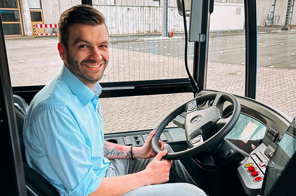 Nicht nur Inhaber Thomas Köhler erfüllt sich hier einen Traum, auch Marktleiter Christian Fromm (Bild oben in der Mitte) ließ es sich nicht nehmen, Kindheitsträume in Erfüllung gehen zu lassen: Kurzerhand steuerte er den Bus eine Runde übers Betriebsgelände. Das Lächeln im Gesicht spricht für sich!